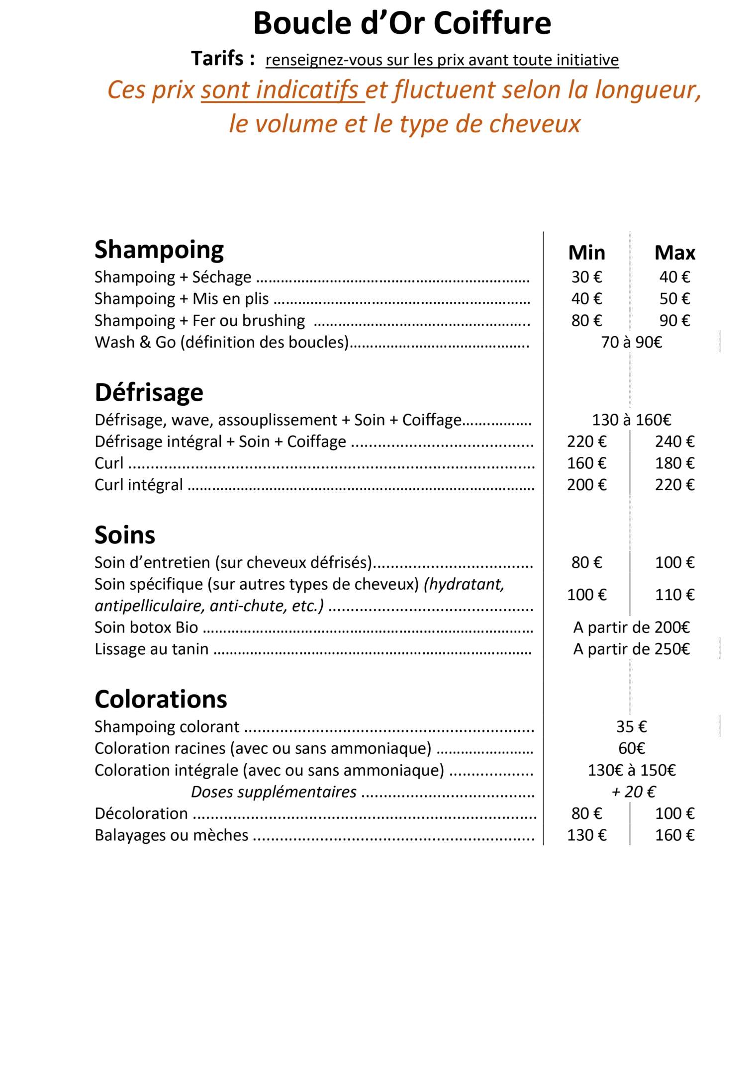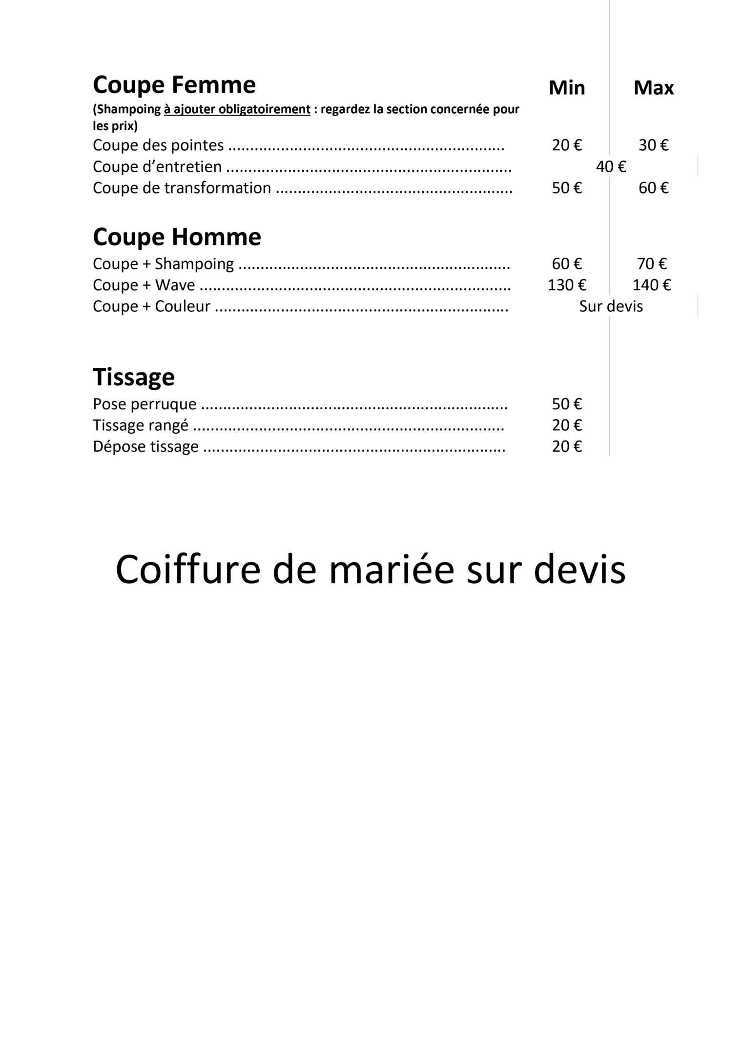 UNIQUEMENT SUR RDV (avec confirmation 24h A l’avance) Nous ne faisons pas de tresses, ni de tissage COMPLET, merci.